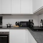 Dette sted tilbyder værelser med gratis et skab, et opholdsområde og et fladskærms-tv med et tekøkken.